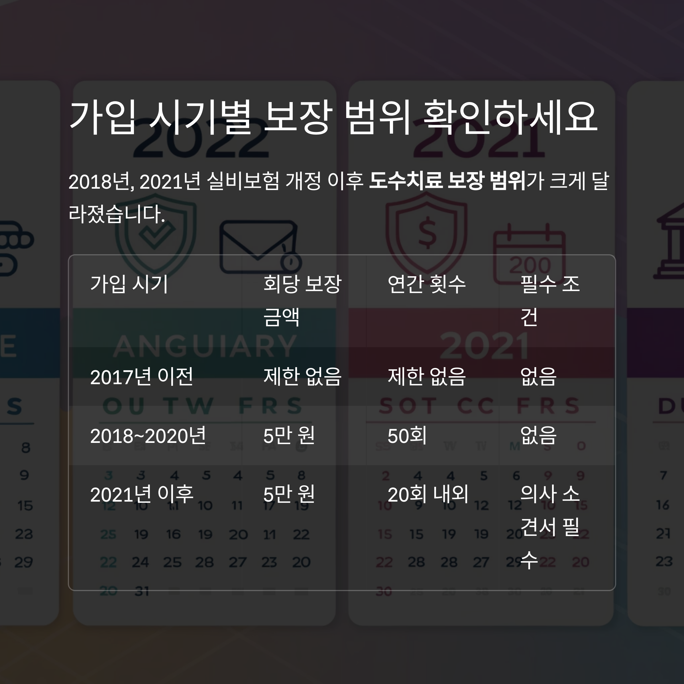 아래 표에서 본인 가입 연도에 따른 보장 범위를 간단히 확인하세요.
