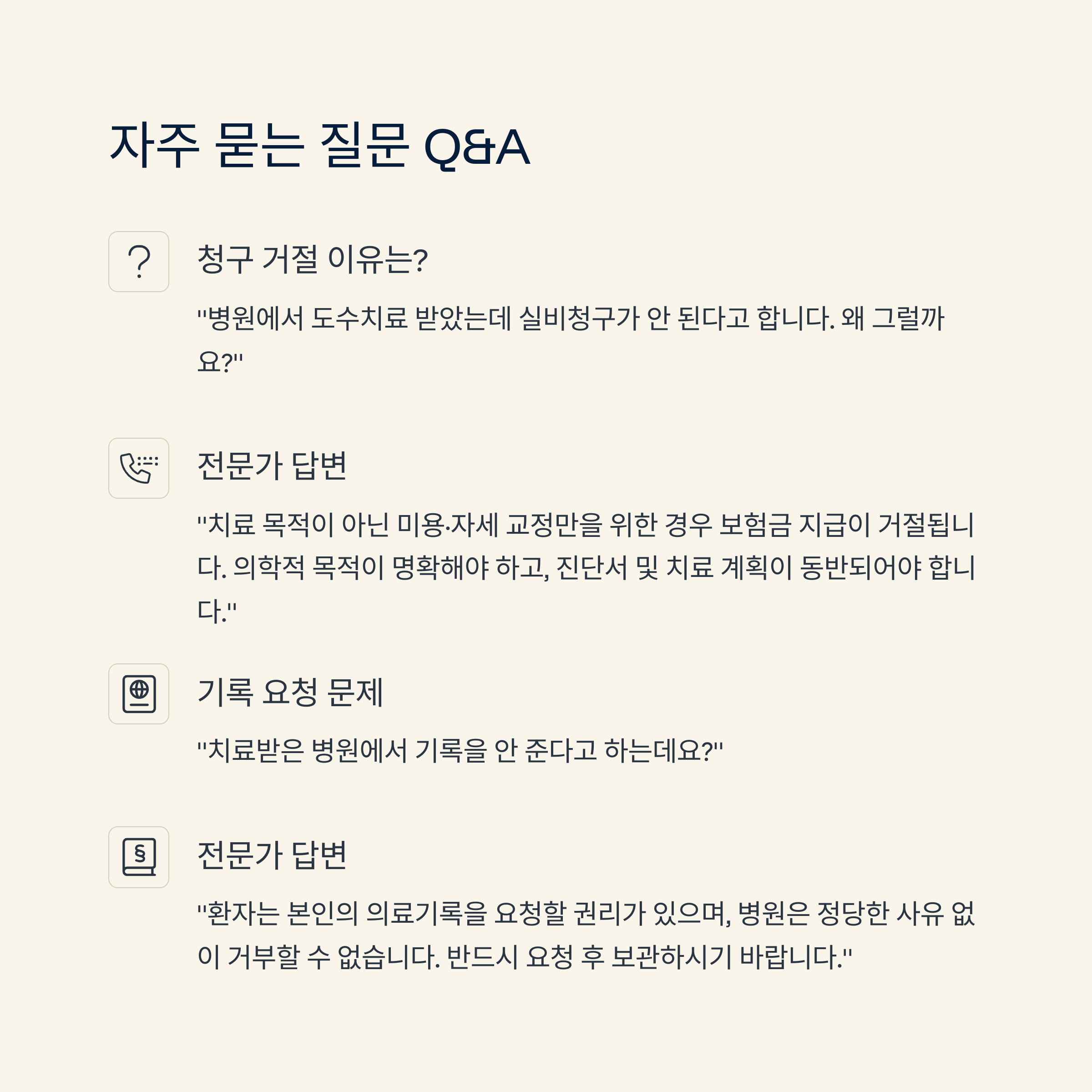 "치료 목적이 아닌 미용·자세 교정만을 위한 경우 보험금 지급이 거절됩니다.