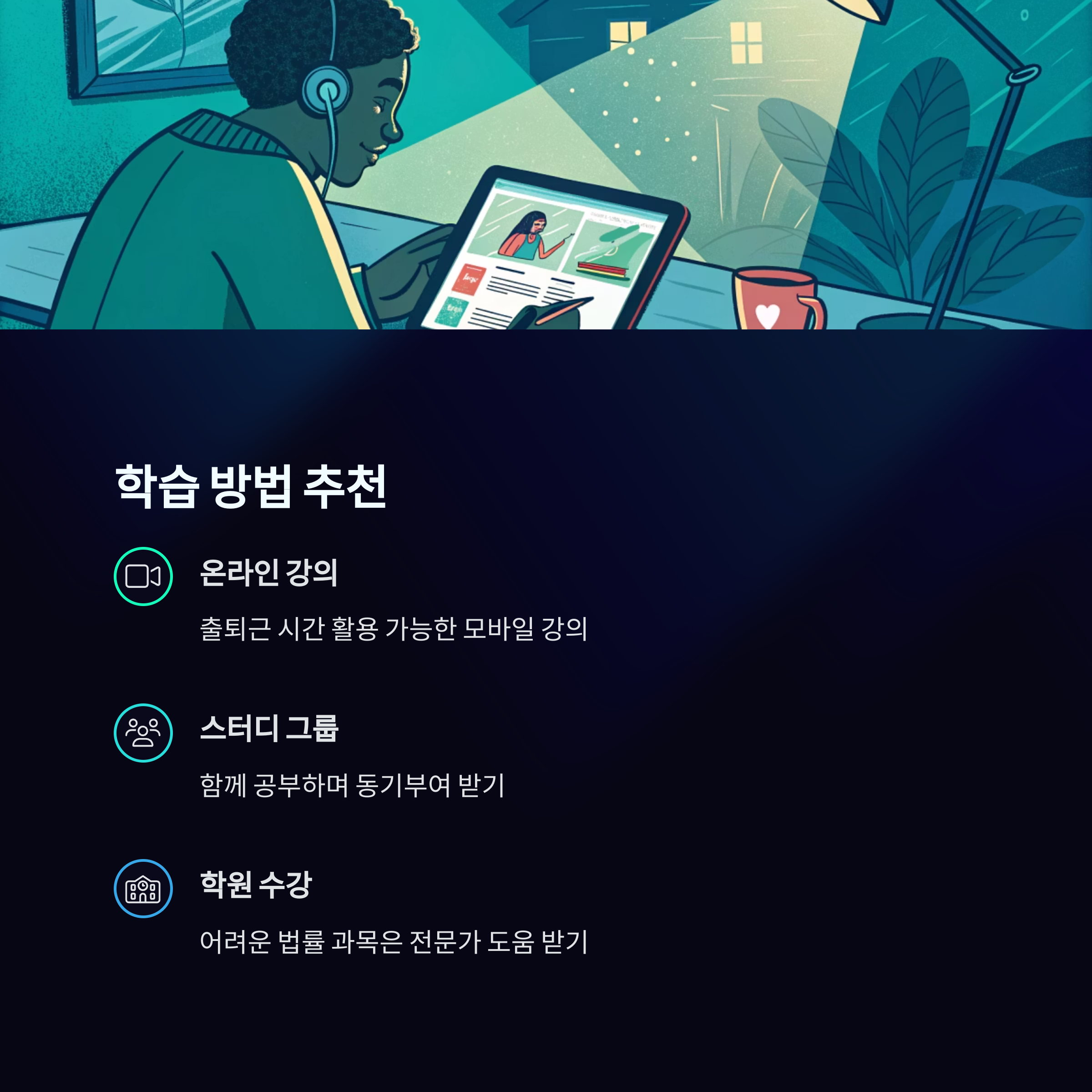 온라인 강의, 학원, 스터디 그룹을 적극 활용하는 것이 좋습니다.